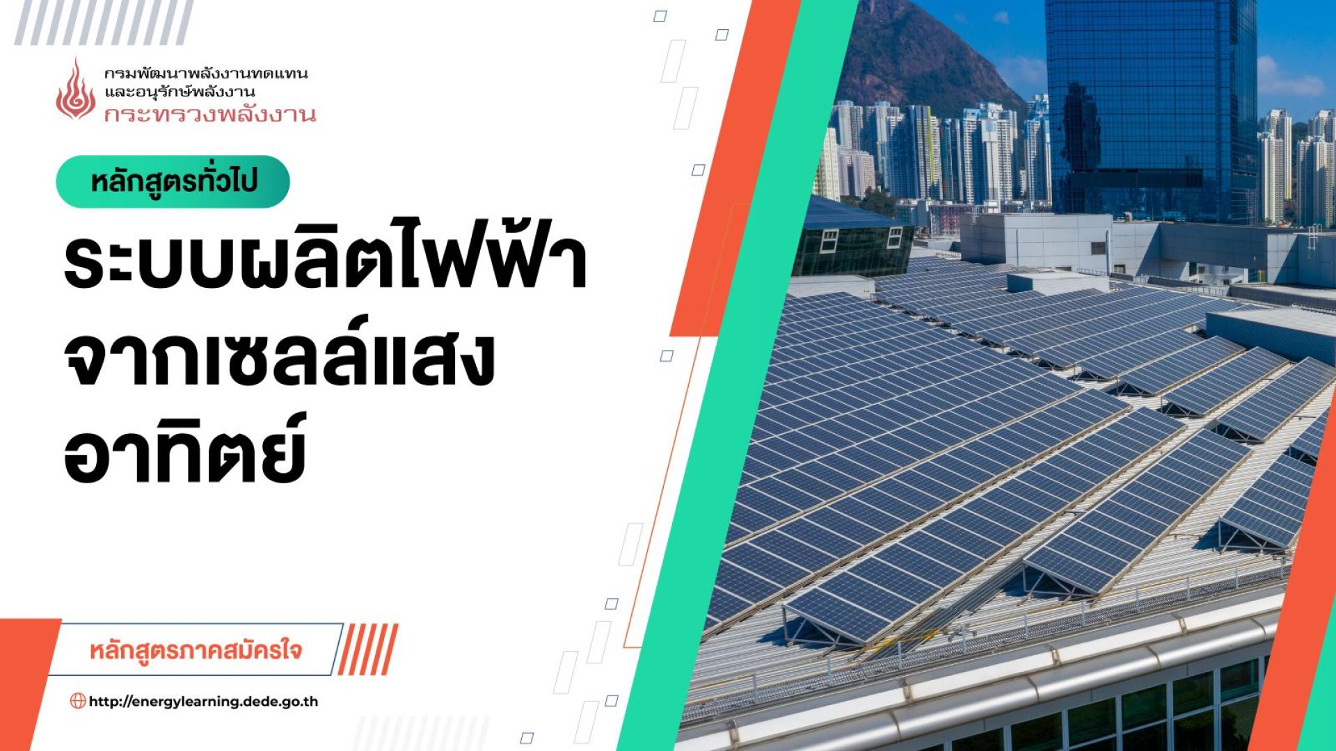 หลักสูตรระบบผลิตไฟฟ้าจากเซลล์แสงอาทิตย์มีจุดประสงค์เพื่อให้ผู้เรียนมีความรู้เบื้องต้นเกี่ยวกับการผลิตไฟฟ้าจากเซลล์แสงอาทิตย์ โดยผู้เรียนจะมีความรู้ความเข้าใจพื้นฐานของเซลล์พลังงานแสงอาทิตย์ เช่น หลักการทำงาน ชนิด ระบบเซลล์พลังงานแสงอาทิตย์ การคำนวณจำนวนแผงและผู้เรียนรู้ถึงปัจจัยที่ต้องคำนึงในการติดตั้งระบบเซลล์พลังงานแสงอาทิตย์และอันตรายที่อาจเกิดขึ้น