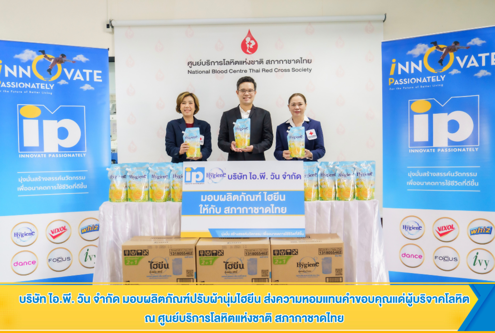บริษัท ไอ.พี. วัน จำกัด เดินหน้าสานต่อภารกิจเพื่อสังคมอย่างต่อเนื่อง ด้วยการมอบผลิตภัณฑ์ปรับผ้านุ่ม ไฮยีน เอ็กซ์เพิร์ท แคร์ เนเจอร์ บูสเตอร์ กลิ่นแอร์รี่ สกาย ให้กับ ศูนย์บริการโลหิตแห่งชาติ สภากาชาดไทย โดยมี คุณธิติ ธเนศวรกุล รองกรรมการผู้จัดการใหญ่ ส่งมอบผลิตภัณฑ์ เพื่อแทนคำขอบคุณจากใจแก่ผู้บริจาคโลหิต การมอบไฮยีนในครั้งนี้ไม่เพียงเป็นการส่งต่อกลิ่นหอมสดชื่น แต่ยังเป็นการสนับสนุนพันธกิจสำคัญของสภากาชาดไทยในการจัดหาปริมาณโลหิตให้เพียงพอต่อความต้องการทางการแพทย์ ซึ่งยังคงมีความจำเป็นอย่างต่อเนื่อง แม้จะมีผู้บริจาคโลหิตจำนวนมาก แต่ความถี่ของการบริจาคยังไม่เพียงพอ ไอ.พี. วัน จึงขอร่วมเป็นอีกหนึ่งพลังสนับสนุน ทั้งในเชิงสื่อสารและส่งมอบสิ่งดี ๆ ให้แก่ผู้บริจาค เพื่อเชิญชวนให้คนไทยที่มีสุขภาพดีมาบริจาคโลหิตอย่างสม่ำเสมอ